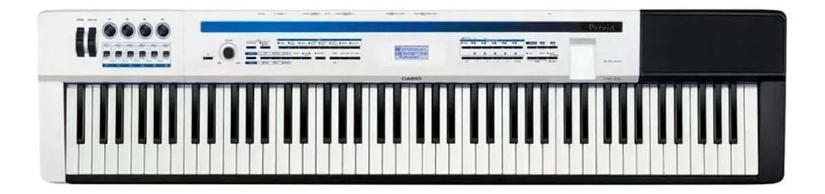 O Teclado CASIO PX-5 S Privia Pro destaca-se claramente de muitos outros pianos digitais devido à sua gama extremamente ampla de funções. Equipado com um controlador MIDI avançado e um processador potente, o novo carro-chefe extremamente atraente da Casio também apresenta a popular geração de som AiR e oferece 340 sons, além de uma abrangente seção de efeitos com reverb, delay e chorus.