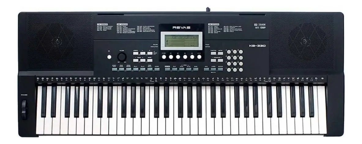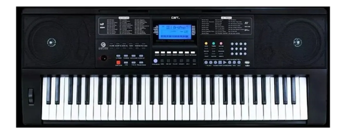 Possui 61 teclas que proporcionam ampla versatilidade musical. Inclui interface MIDI para conexão com outros dispositivos.